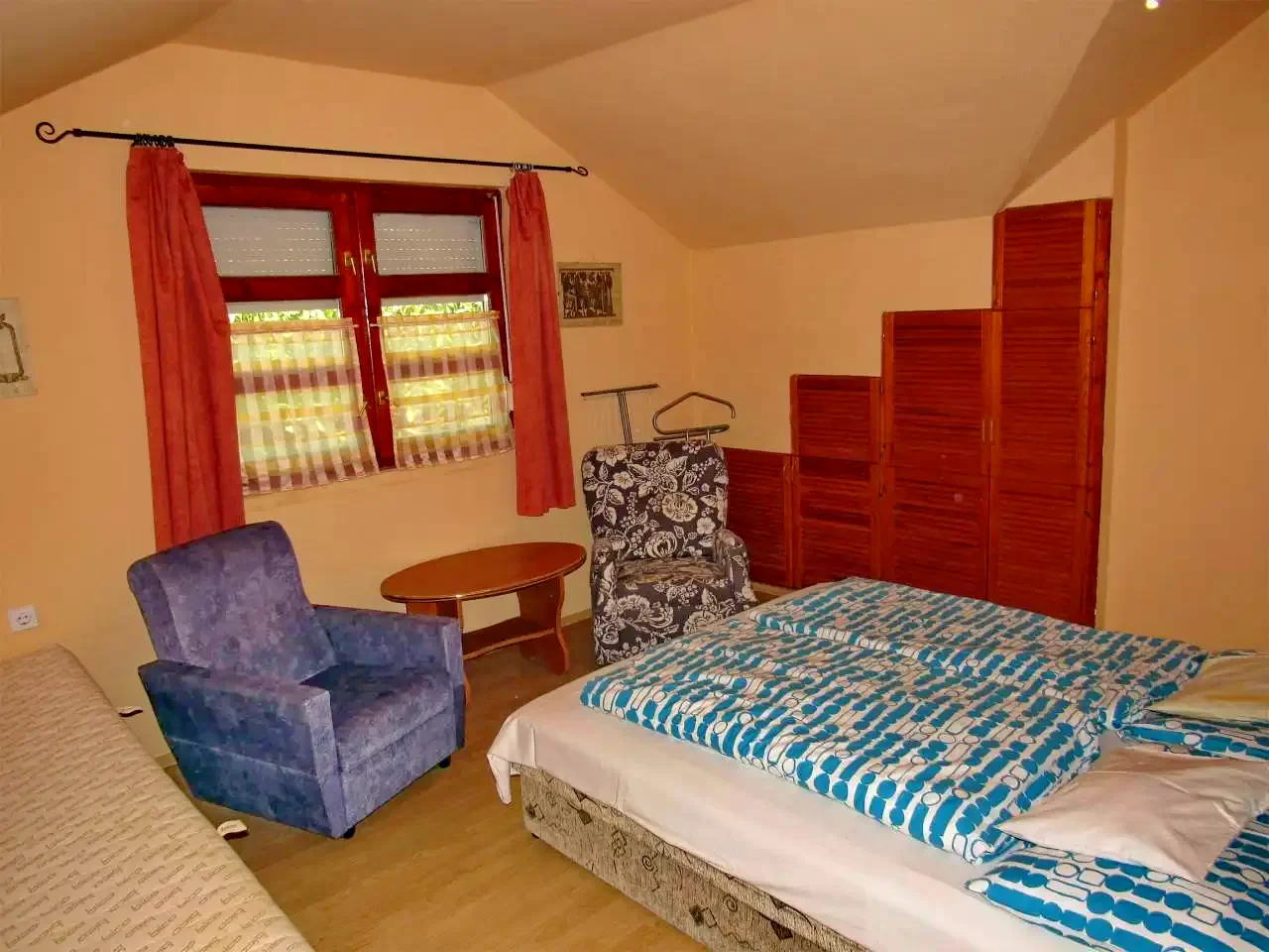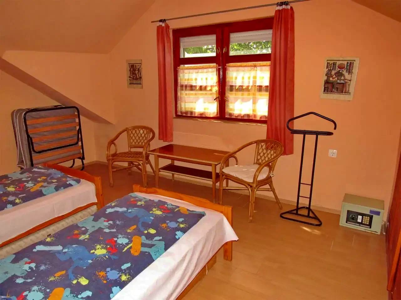 La Hajduszoboszlo, într-o zonă frumoasă, relaxantă, ca şi continuare a unui şir de hotele se află clădirea de 2 etaje care dă loc celor 4 apartamente. Două apartamente cu 4 paturi (camere separate), un apartament de 5 paturi (2 camere separate) şi un apartament cu 6 paturi (3 camere separate). Fiecare apartament este dotat cu baie, WC, bucătărie proprie, complet echipată (aragaz, frigider, cuptor cu microunde etc.), televizor, terasă, seif. Fiecare apartament poate fi completată cu pat suplimentar. Asigurăm parcare pentru mai multe maşini în curtea noastră închisă. În curte găsiţi o terasă acoperită ideal şi pentru multe persoane, loc pentru grătar. Servicii baby-friendly: 3 leagăne diferite, ţarcuri cu plasă, scaune şi măsuţe pentru bebeluşi. Ştrandul termal este la o distanţă de 10 minute plimbare prin aleea Matyas Kiraly. Este o stradă pentru turisşi plin de restaurante, bebării, locuri de distracţie.