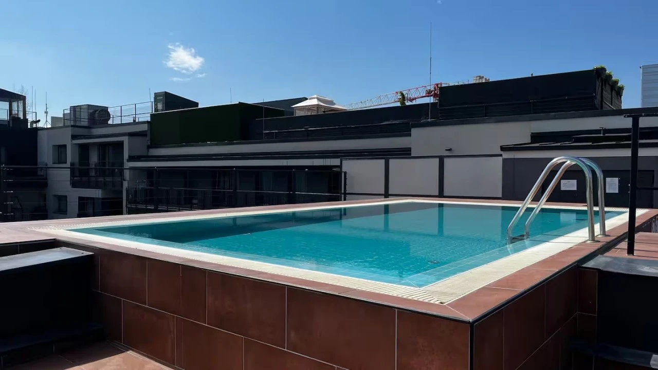 Unul dintre punctele forte ale apartamentului este piscina sezonieră de pe acoperiș, care oferă o panoramă spectaculoasă asupra orașului. Terasa pentru plajă este locul perfect pentru relaxare și momente de răsfăț.