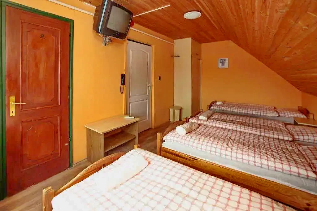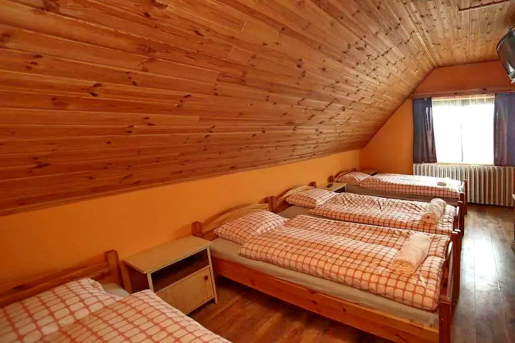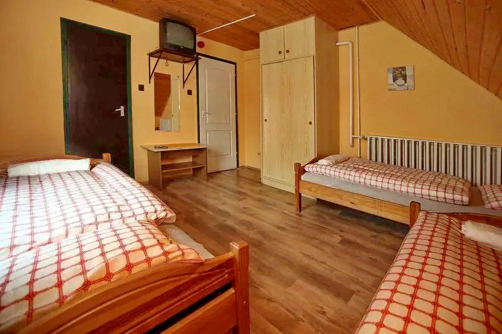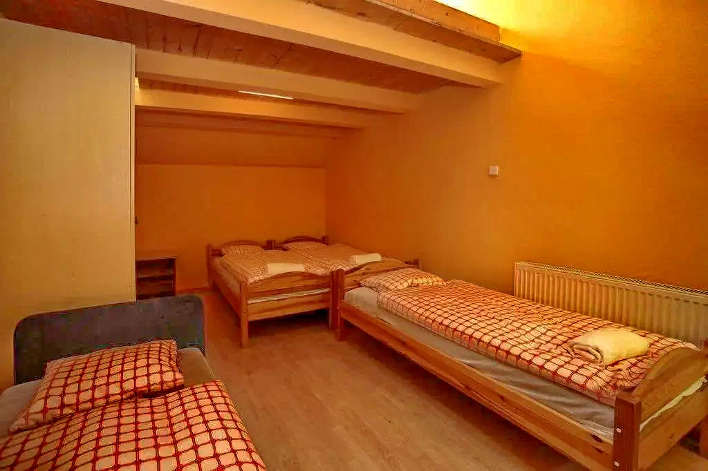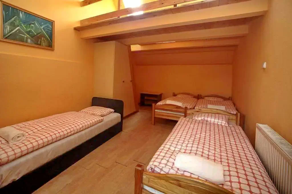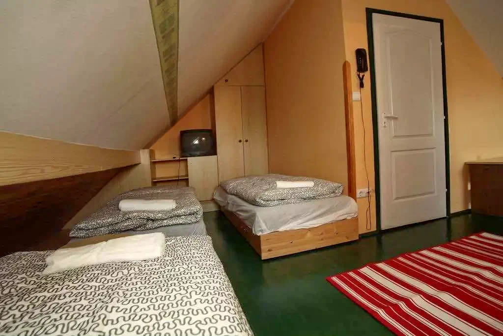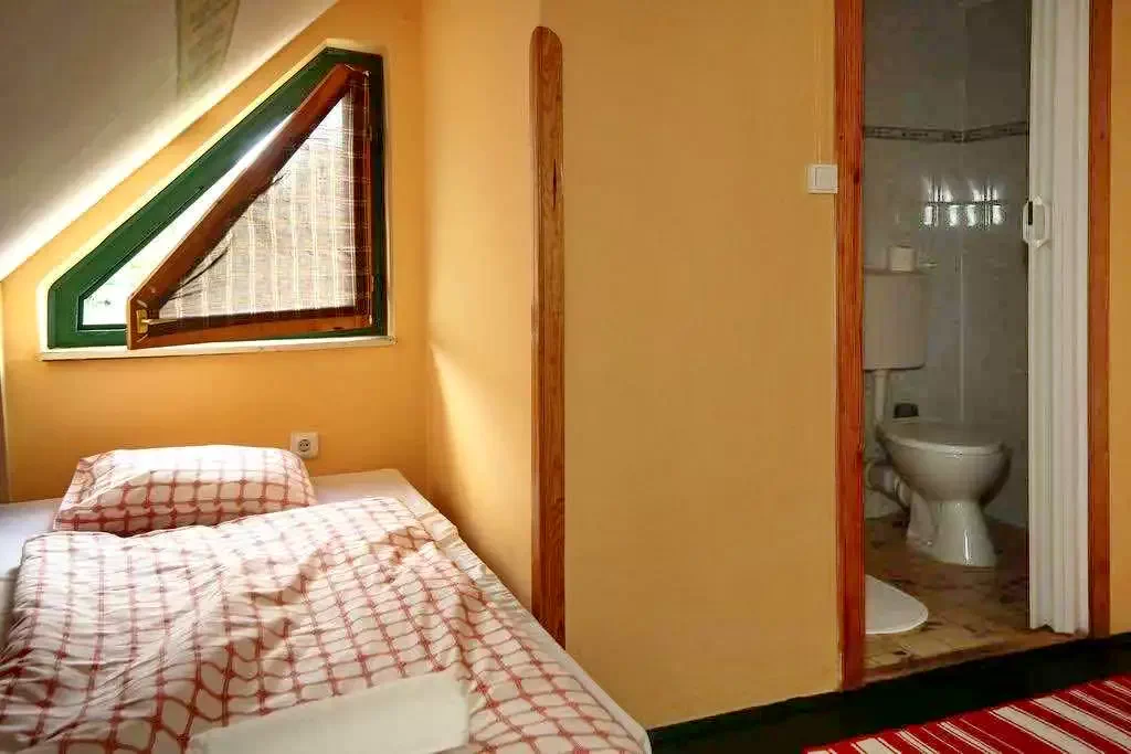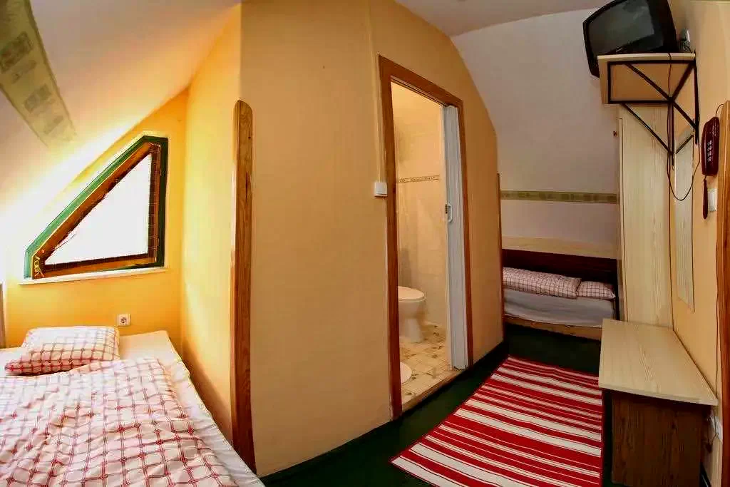 Camera 11 (pentru 4 persoane): Mansardă cu 4 paturi, în mod normal 4 paturi simple, dintre care 2 pot fi combinate, 2 separate. Este dotată cu o baie privată, TV și WIFI gratuit. (Aer condiționat)