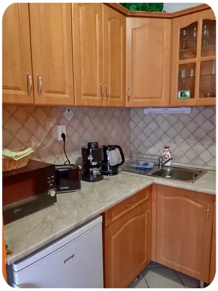 - bucatarie utilata cu de toate (frigider cu congelator, cuptor cu microunde, toaster, ceainic, aparat de cafea, plita electrica)