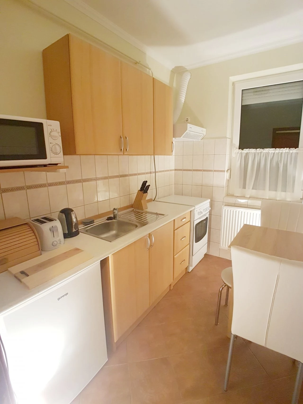 apartament modern, sofisticat cu atmosferă familială pentru maxim 4 persoane se află la parter și are 1 dormitor, bucătărie, baie