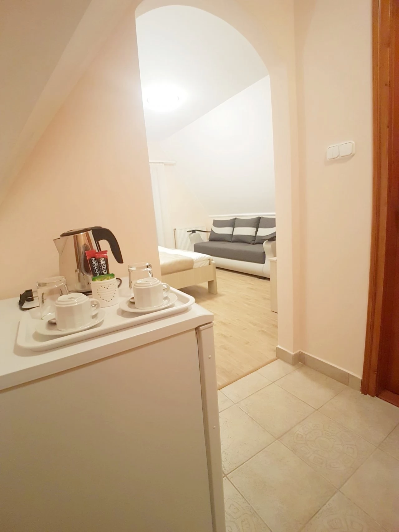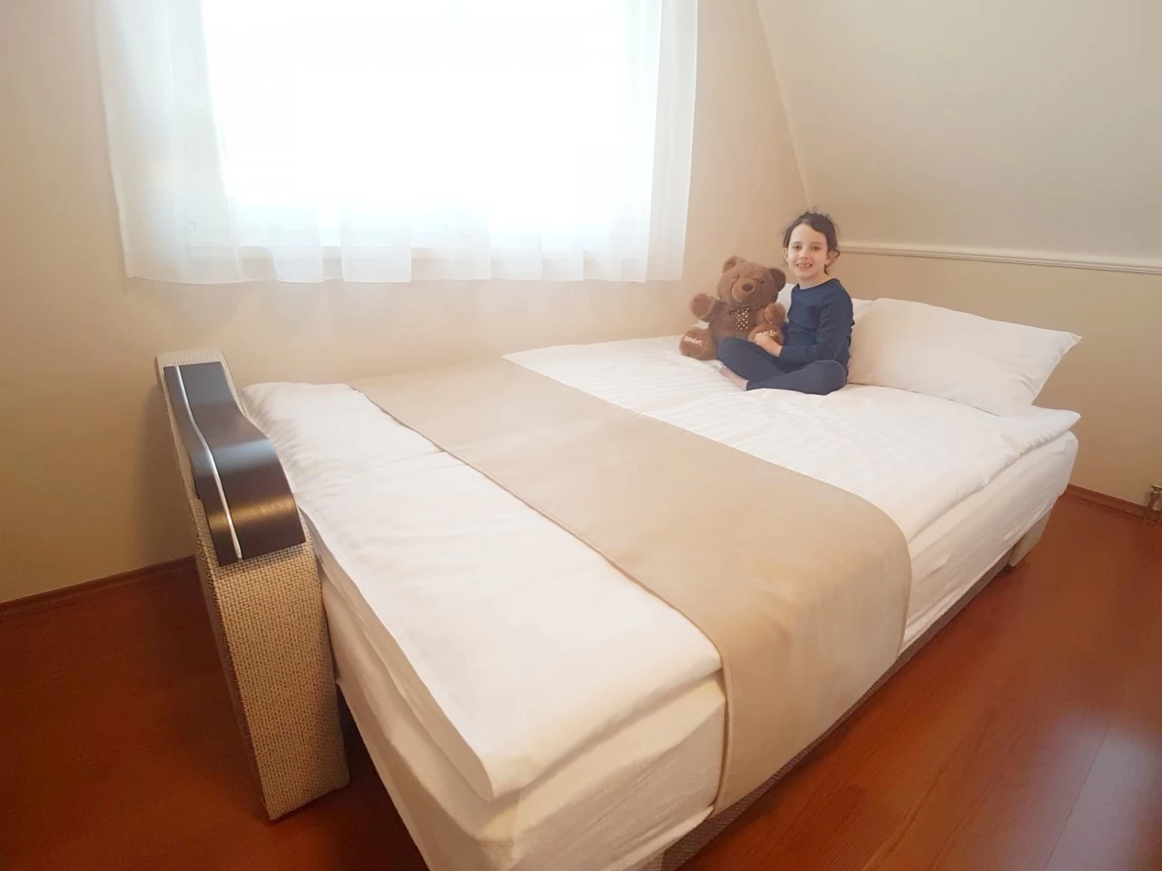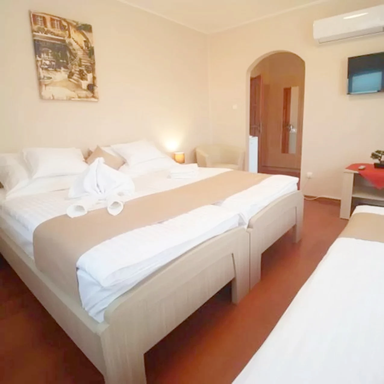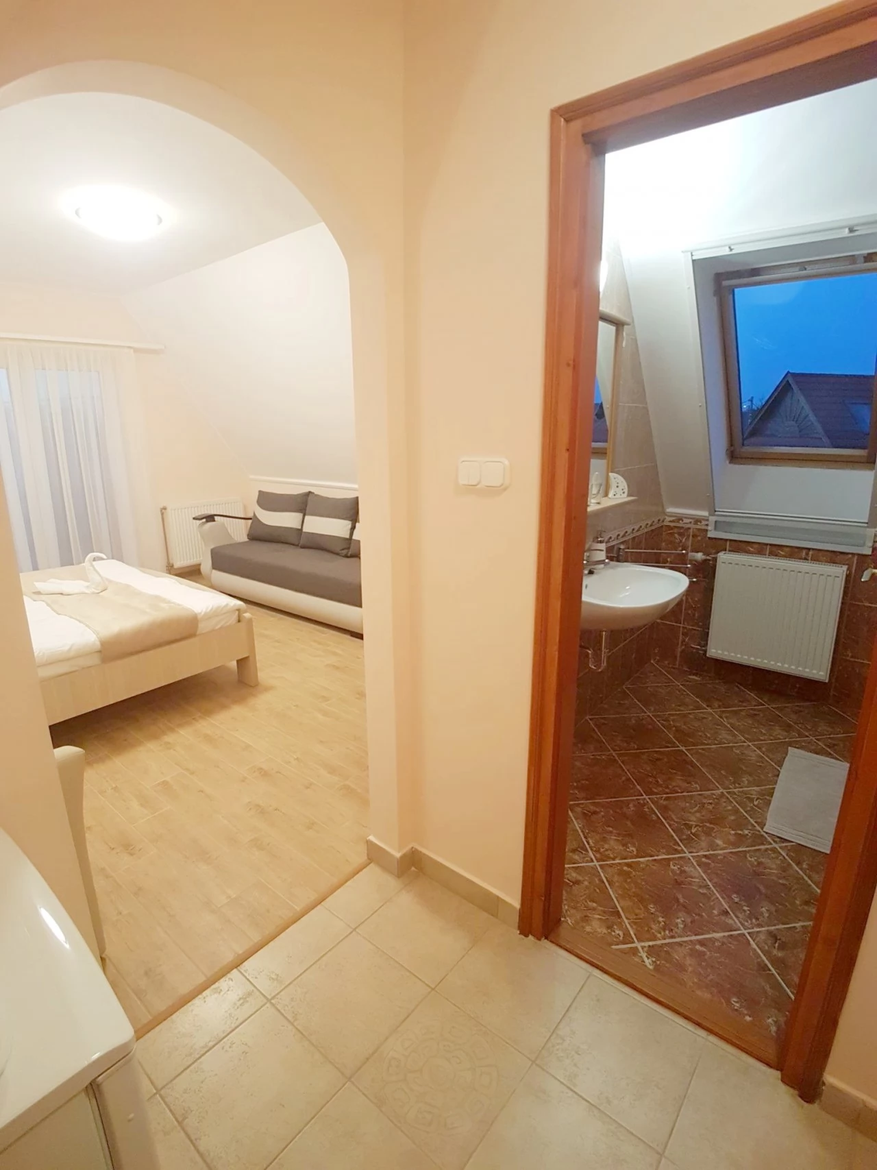 camera de la etaj are 2 paturi individuale care pot fi scoase la cerere și o canapea extensibilă confortabilă pentru 2 persoane, deci camera poate fi rezervată pentru un număr de 4 persoane