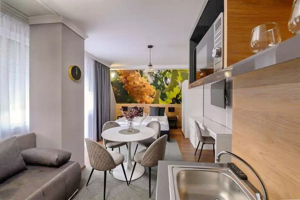 1 apartament pentru 5 persoane cu bucătărie și balcon