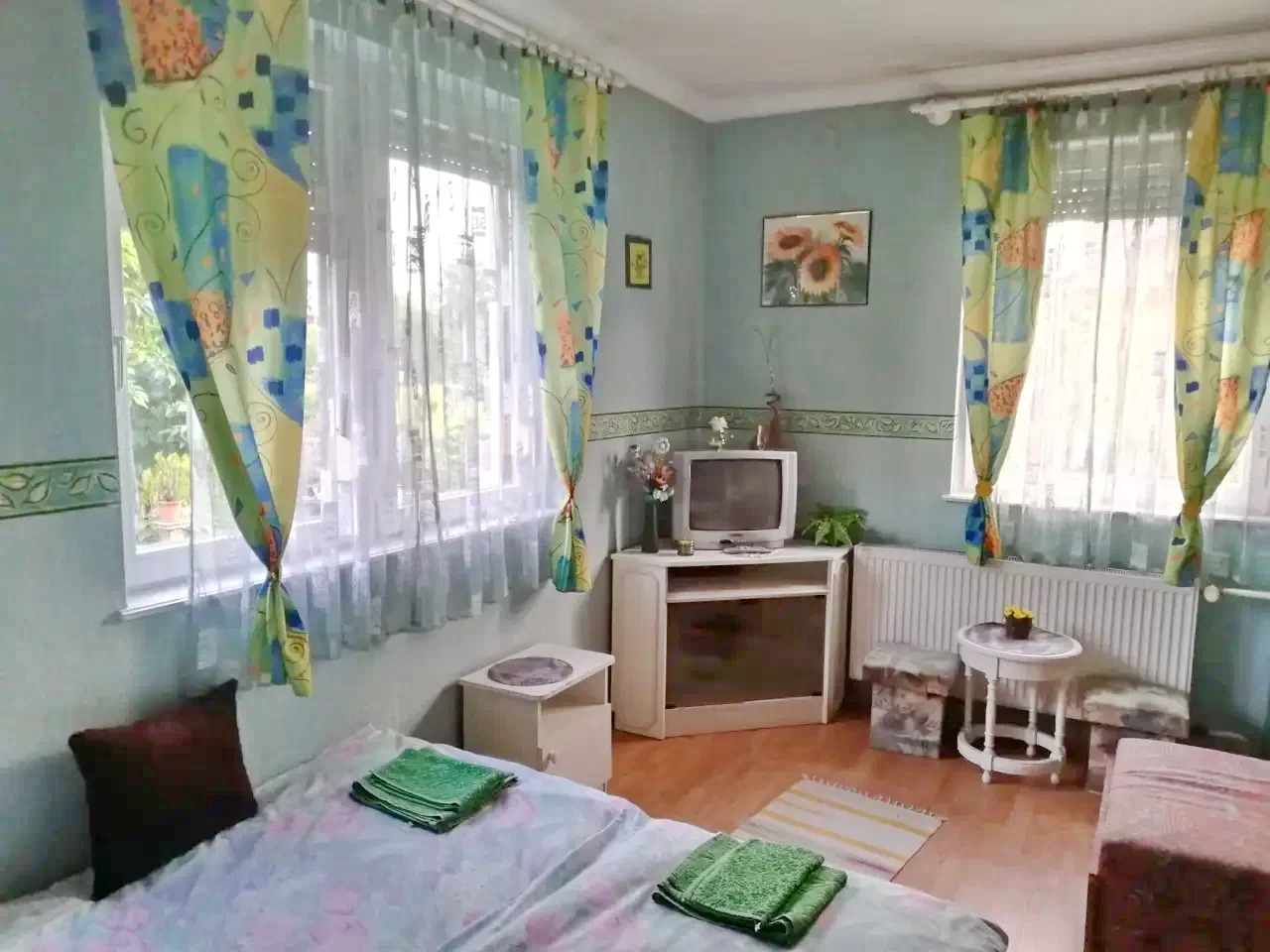 Plaja și centrul spa, precum și Aquapark și Aqua Palace sunt la 1.200 m de Casa de oaspeți. Puteți folosi autobuzul, care se află la 150 m de pensiunea noastră și oprește la spa. Pensiunea poate găzdui 8+2 persoane. Casa are 3 camere, o bucatarie complet utilata, o sufragerie, o baie comuna si o toaleta separata. Mașinile pot fi parcate în curtea închisă, amenajată. Sunt disponibile o terasă și odihnă în grădină. Oferim grătar și ceainic pentru gătit în aer liber..