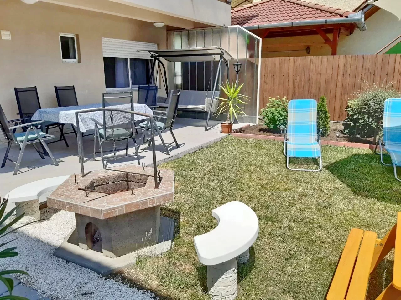 În zona de vacanţă a oraşului Hajduszoboszló, la 8 minute de ștrand găsiţi casa de oaspeţi , cu două etaje, un apartament pe fiecare etaj, fiecare cu intrare proprie. La parter se găseşte o cameră de zi spaţioasă, bucătărie, sufragerie şi baie pentru tot confortul oaspeţilor. Apartamentul la etajul superior are 2 camere, colţ bucătărie-sufragerie şi băi proprii. Apartamentele pot fi închiriate separat sau împreună pentru aceaşi grup. Oaspeţilor se asigură parcare în curtea închisă.