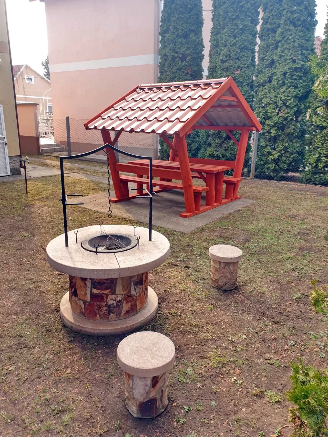 - opțiune de gătit la grătar (cărbune gratuit), opțiune de gătit cu slănină (lemne de foc gratuit), gătit la grătar (lemne de foc gratuit), prepararea ceainicului (lemne de foc gratuit)