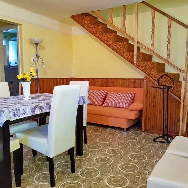Aș recomanda această pensiune cu 8-9 paturi, frumoasă și proiectată estetic în atenția celor care doresc să se bucure de toate oportunitățile pe care Hajdúszoboszló le oferă împreună cu un grup de prieteni, familie, rude sau grupuri. Această cazare la prețuri accesibile poate oferi tot ce este necesar pentru confortul unui număr atât de mare de persoane. Imaginile de mai jos arată cât spațiu există pentru programe comune, jocuri și gătit. Grădina sa care poate fi încuiată este potrivită pentru depozitarea în siguranță a mai multor vehicule. Casa cu aer condiționat și încălzire centrală este confortabilă și parțial renovată. Apartamentul se afla la 600 m de complexul balnear si este situat intr-o statiune linistita, linistita a orasului. Bucătăria este complet utilată.