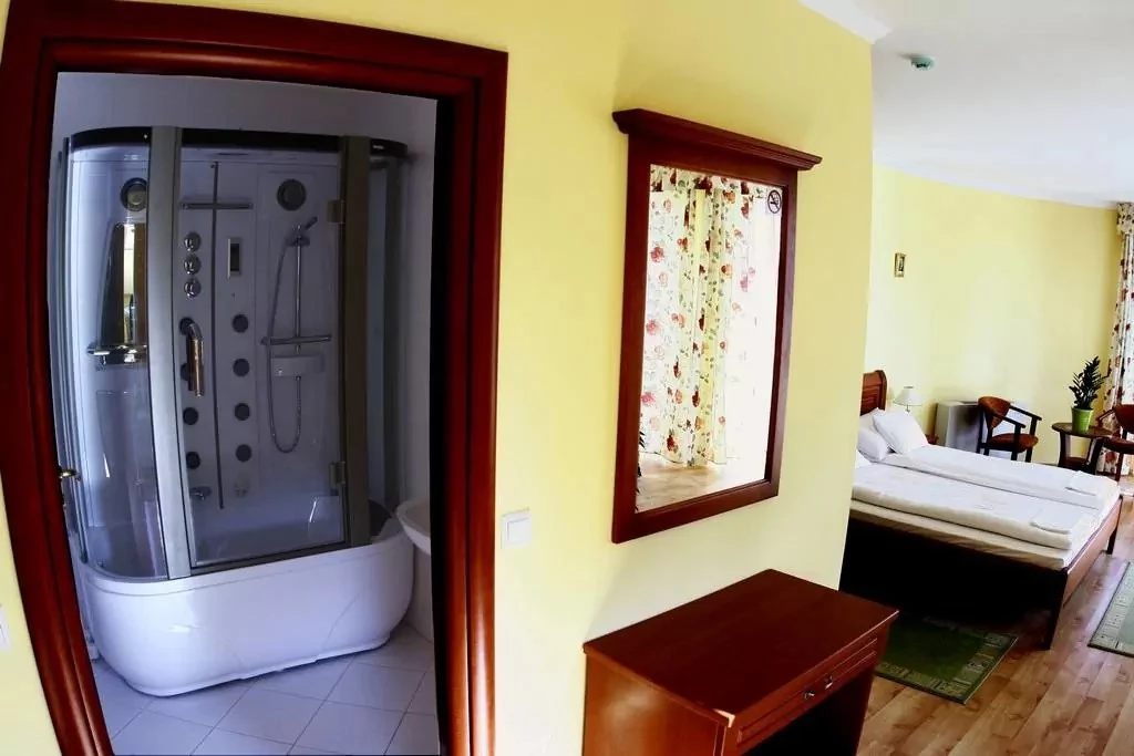 Hotelul de 3 stele este situat chiar lângă spa și Aqua Palace, care are 6 apartamente și 14 camere cu 2 paturi cu aer condiționat. Garajul gratuit oferă camere cu acces la lift.