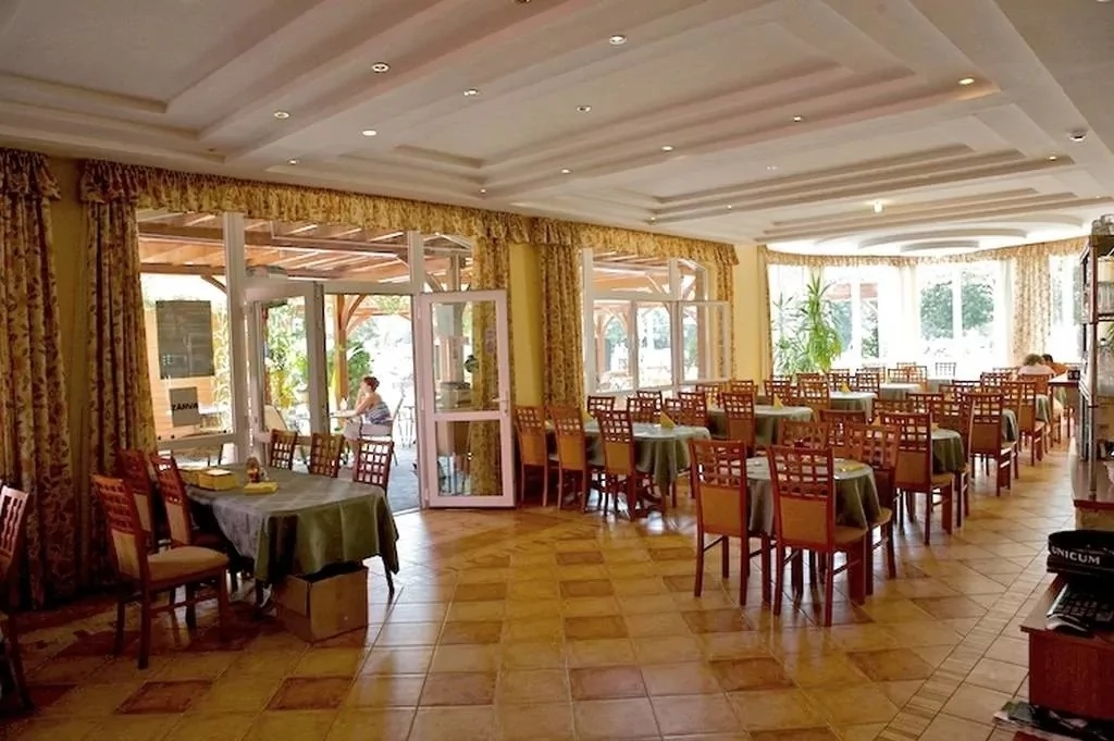 Restaurantul hotelului ***, care poate găzdui până la 70 de persoane, își așteaptă oaspeții cu muzică live și o selecție bogată de bucătărie maghiară. Sectiunea wellness are o saună infra-finlandeză, echipament de fitness și o masă de ceragem, precum și un jacuzzi.