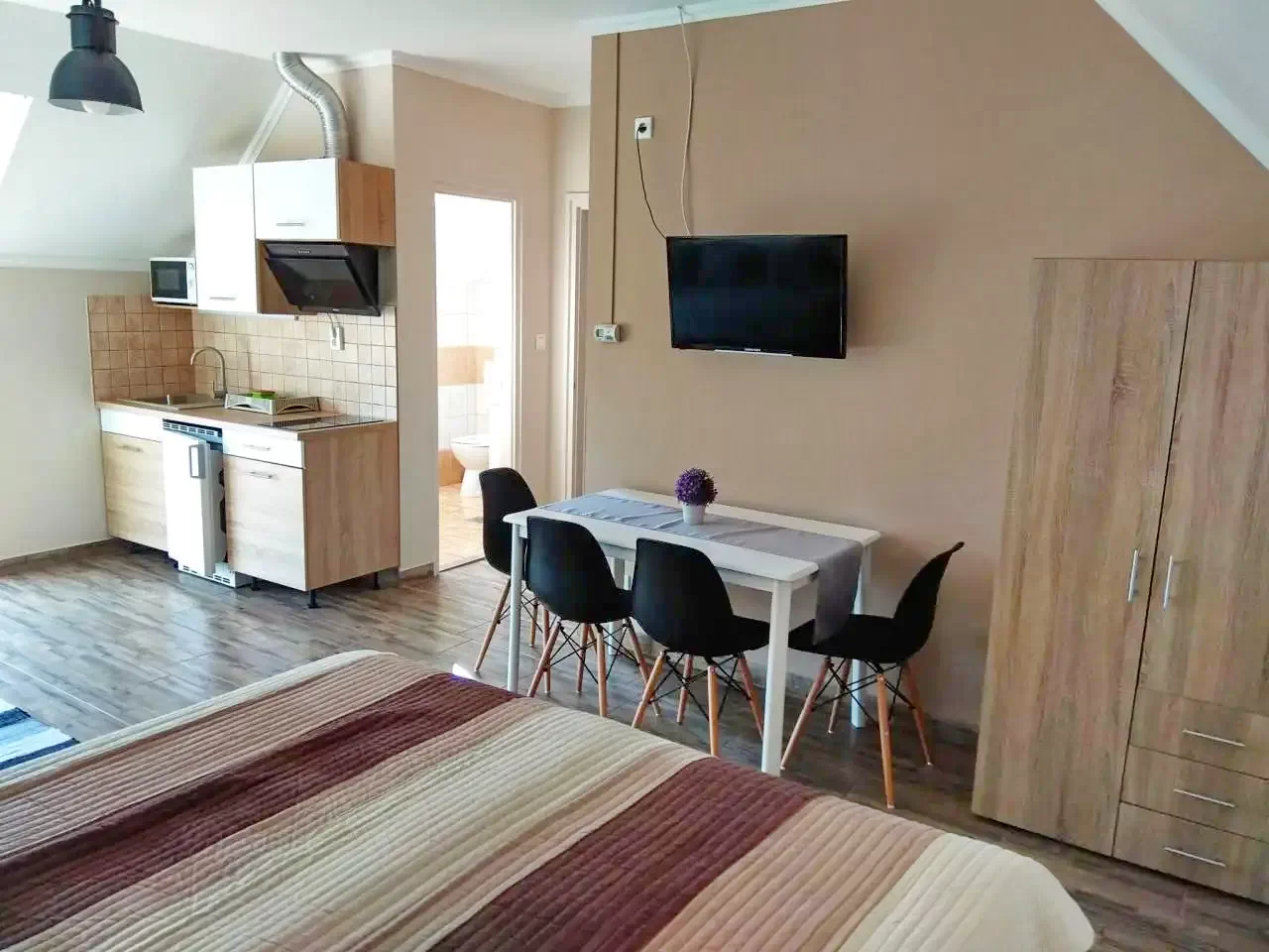 - Apartman tip studio pentru 2 persoane: 12000 HUF (155 RON) / pers / noapte + taxa locala + taxa locala de 9 RON/pers/noapte