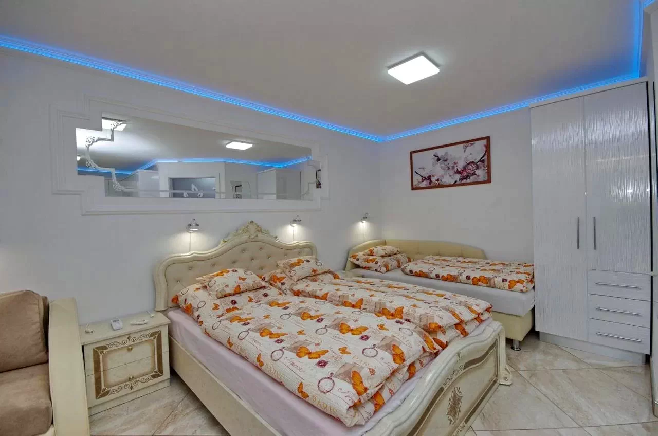 Apartamentul spatios, confortabil dispune si de o parcare in curte inchisa, unde va puteti parca masina in siguranta in orice moment al zilei. Unitatea de cazare este dotată cu aer condiționat, are o bucătărie complet utilată. Ne întâmpinăm oaspeții în apartamentul De Luxe pe tot parcursul anului.