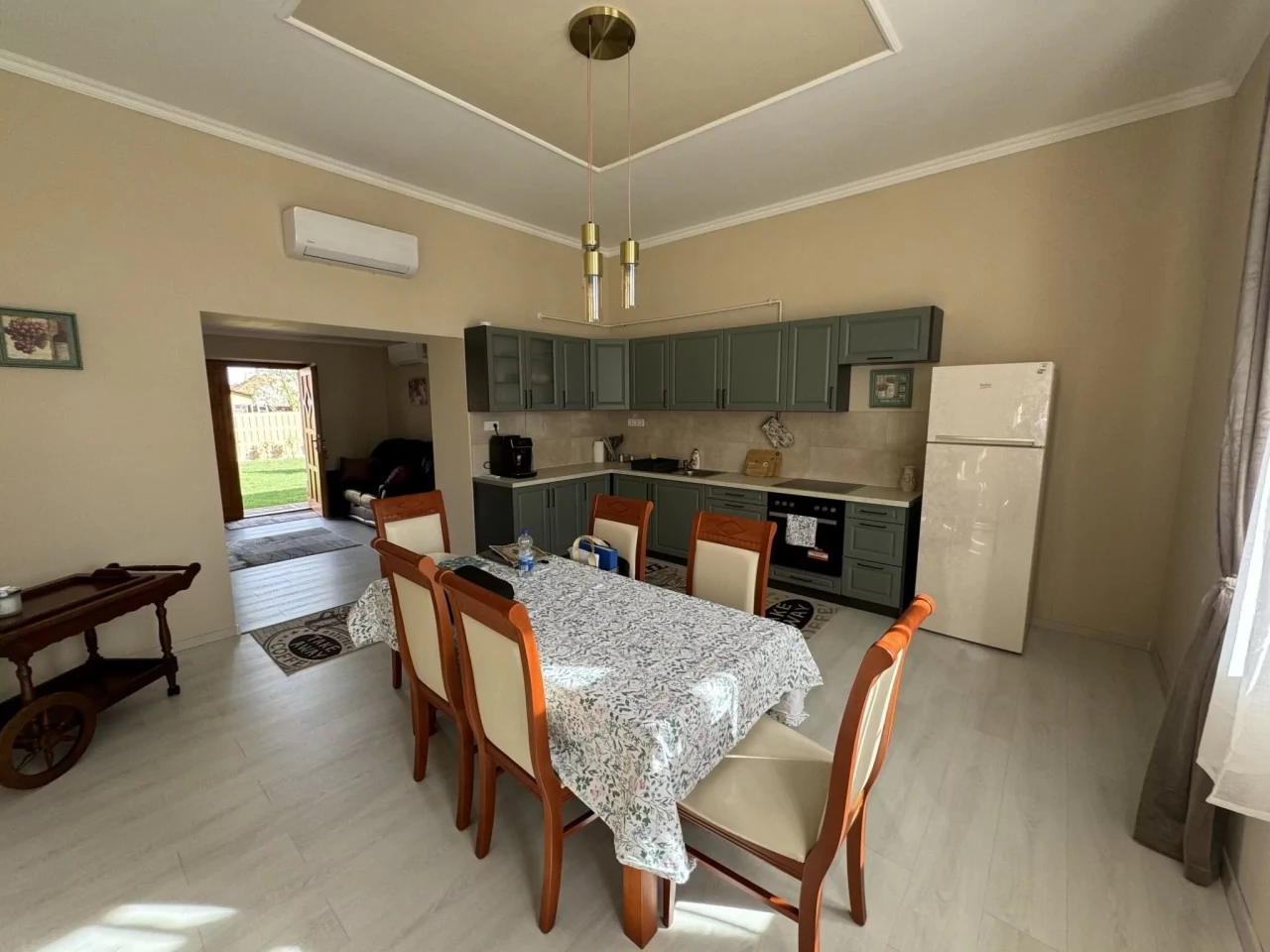 1 apartament cu 3 dormitoare bucatarie utilata cu living si sufragerie. Fiecare cameră are propria sa baie