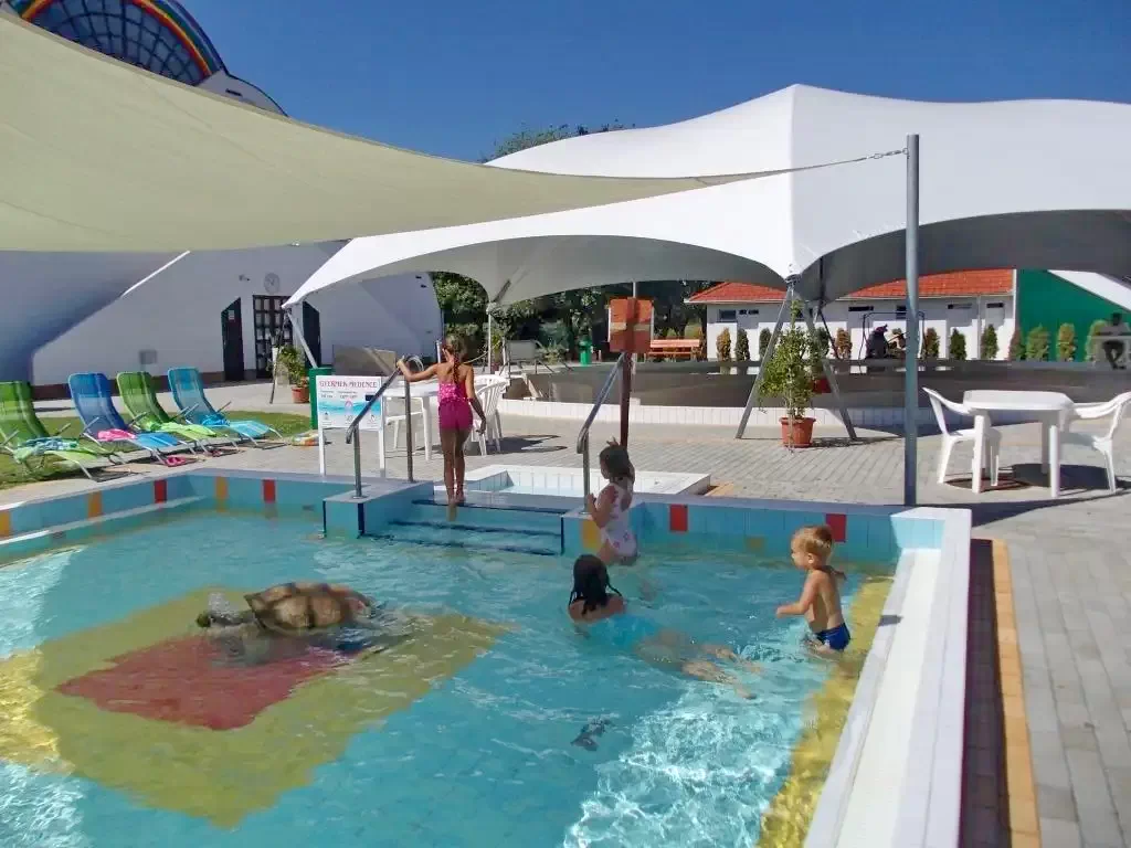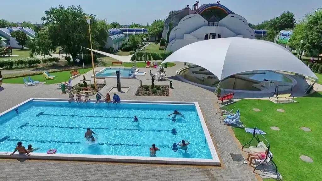 - Servicii masaj (2 000 Ft (~ 24.97 ron) - 5 000 Ft (~ 62.42 ron)/ocazie masaj suedez), Jacuzzi (4 000 Ft (~ 49.94 ron)/ocazie), Piscina cu apa termala (Exterior/Exterioara sezonier(a) 35-36 °C 100 cm), Piscina terapeutica (Exterior/Exterioara sezonier(a) 37-38 °C 90 cm), Bazin de inot (Exterior/Exterioara sezonier(a) 27-28 °C 120 cm), Piscina pentru copii (Exterior/Exterioara sezonier(a) 32-33 °C 60 cm)