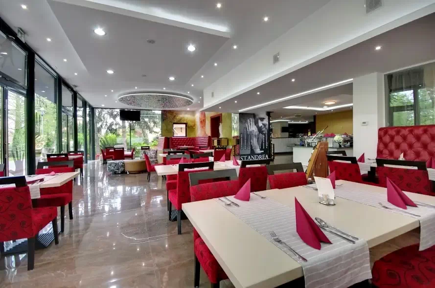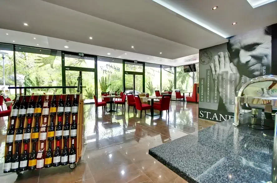 La barul hotelului se serveşte cafea din boabe PAVIN , cappuccino, ciocolată caldă şi alte băuturi alcoolice si fără alcool. La Hotel se găsesc vinurile din potgoria ST.Andrea, pe cea mai largă gamă.