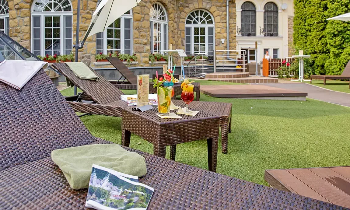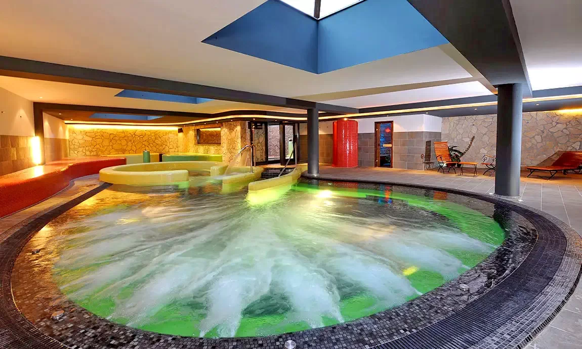 - În secțiunea noastră de wellness: piscină, saune, piscină cu balon, baie de aburi, banda de alergare interioară și bazin pentru scufundări; În secțiunea noastră de wellness liniștită între orele 07.00-09.00 și 19.00-21.00 doar pentru oaspeții noștri peste 14 ani, iar între 09.00 și 19.00 ore pentru copiii sub 14 ani: piscină de aventură, cameră cu sare, saună finlandeză în aer liber și piscină pentru scufundări;
