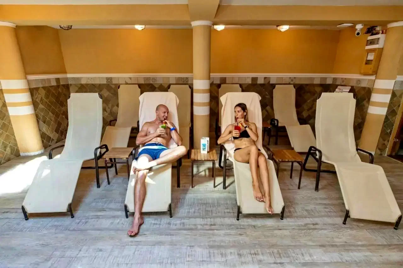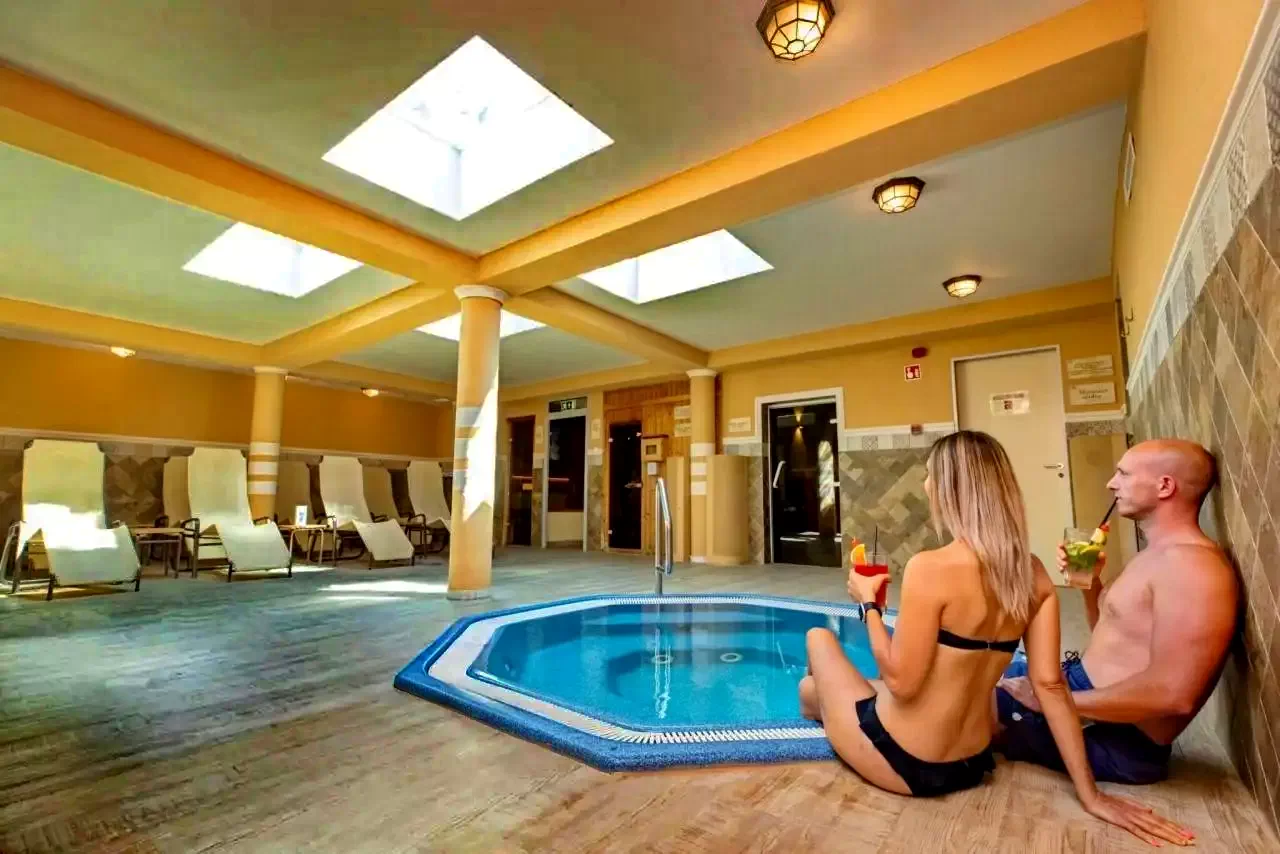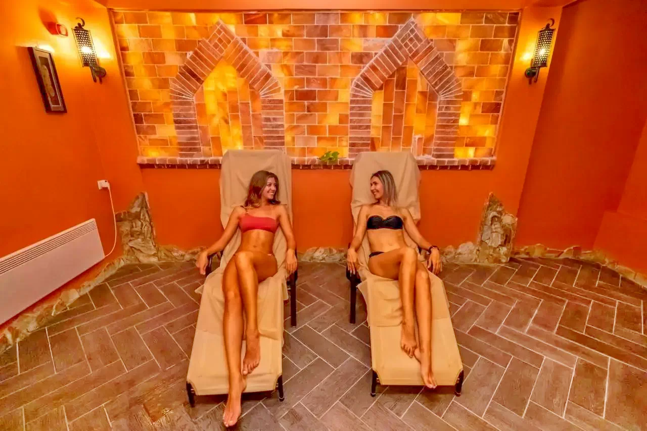 - Utilizarea gratuită a centrului de wellness (piscină sezonieră în aer liber cu șezlonguri, sală unică de sare, saună finlandeză mediteraneană, saună aromată, saună cu infraroșu terapie ușoară, duș, jacuzzi cu elemente de masaj)