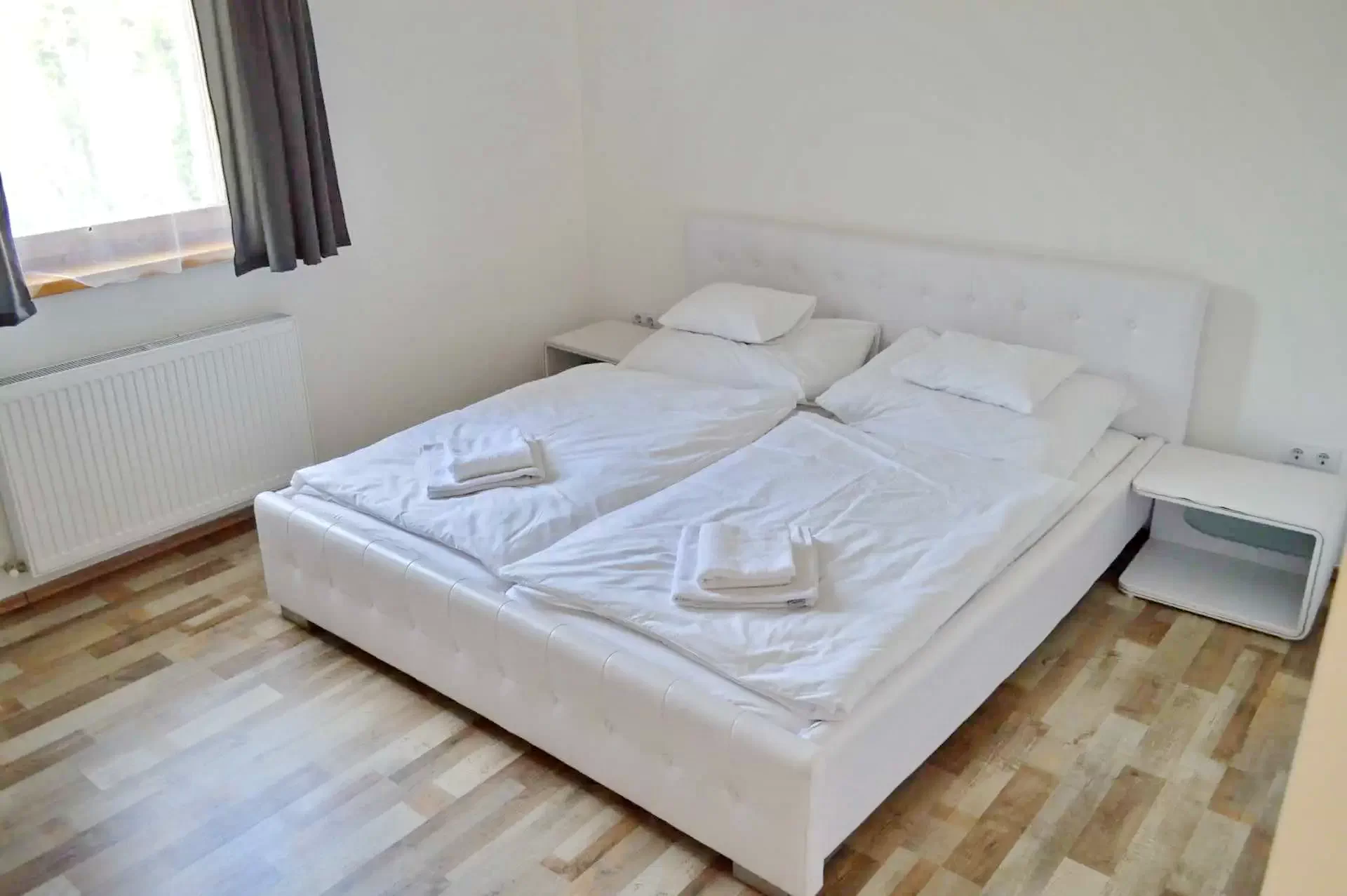 Apartament modern, elegant, confortabil, cu mobilier alb. Casa de oaspeți poate găzdui 6 persoane și are 2 camere duble și o canapea dublă în living. Casa are o baie cu duș și toaletă, precum și un salon comun și o bucătărie.