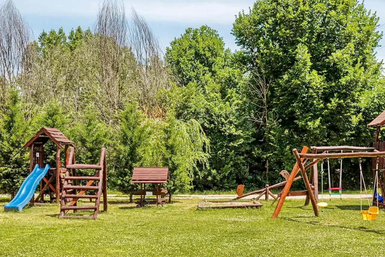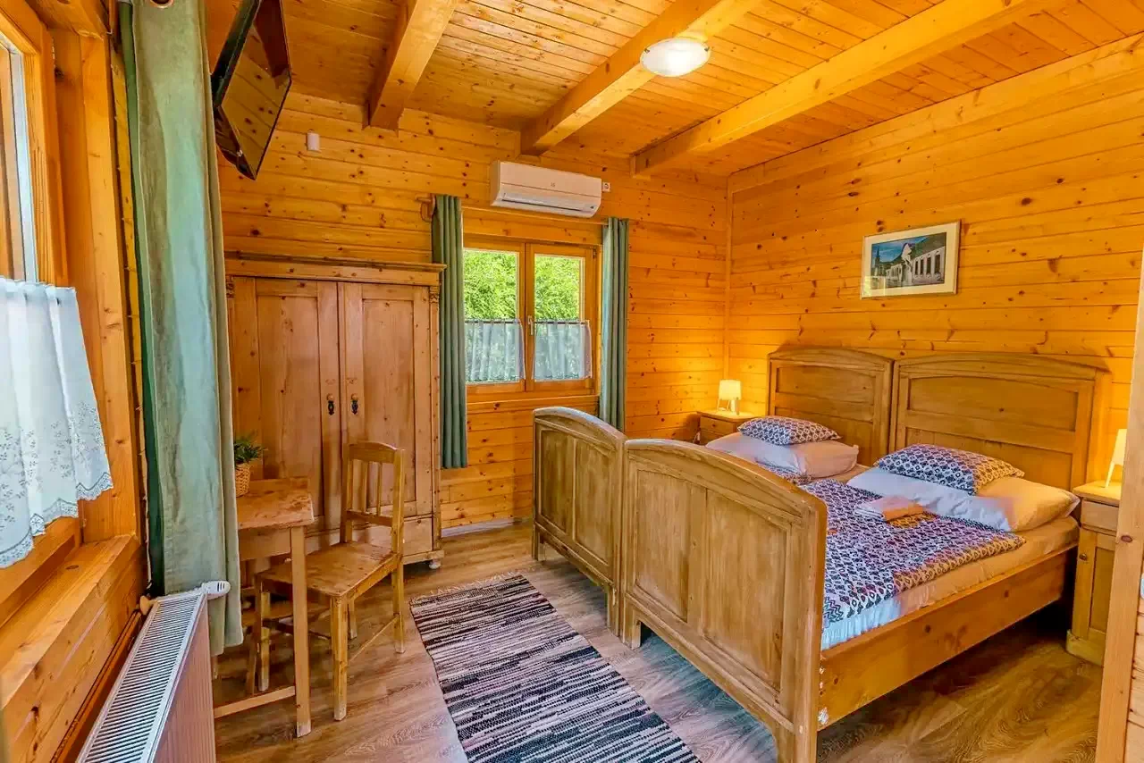 Mobilată cu mobilier țărănesc, care reflectă atmosfera vieții rurale, casa pentru 12 persoane are 4 camere duble și o cameră de familie cu 4 paturi și o bucătărie comună mare. Camerele duble au o baie cu duș și toaletă și TV. Toate camerele casei sunt cu aer condiționat. Există un șemineu lângă casă, care este potrivit și pentru tocană și prăjit slănină.