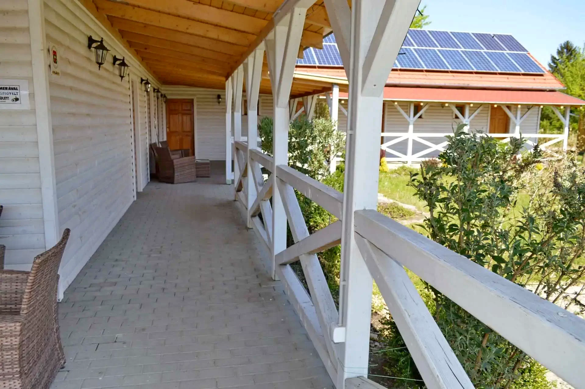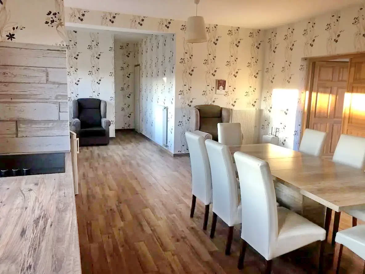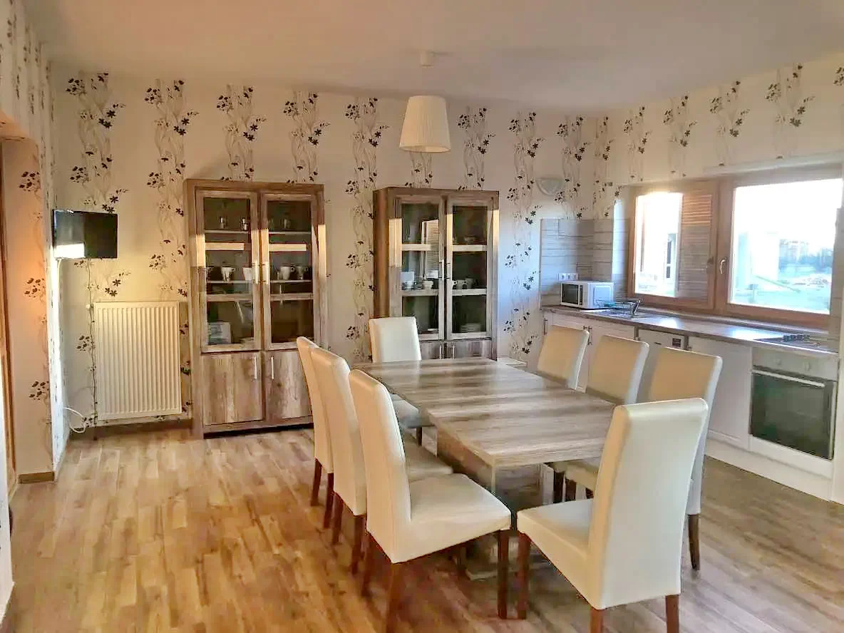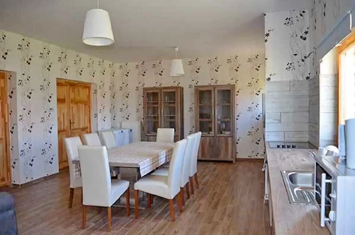 Casa de oaspeți modernă, elegantă, confortabilă, cu mobilier alb, are 4 camere, pentru două persoane, dar datorită patului suplimentar, 3 persoane se pot relaxa confortabil. Fiecare cameră are o baie cu duș și toaletă, precum și un salon comun și o bucătărie dublă . Camera comună spațioasă și luminoasă are mese, scaune și fotolii confortabile pentru conversație.